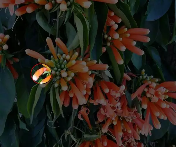 大千世界,无奇不有。而“水中鱼儿”却游上枝头变成鲜花,就更是让人觉得新奇。华南植物园热带雨林温室中正在盛开的金鱼花,其花朵俏皮可爱酷似小金鱼,两端小,中部膨大,像极了金鱼的大肚子,身上带着若隐若现的彩色斑纹,前端有个小开口,含苞时似静卧水中闭目养神,绽放后又如张大嘴巴等待食物,形神俱似,惟妙惟肖。现在正值盛花期,枝蔓上缀满了艳丽的花朵,就像一群群调皮的小金鱼浮游在葱绿的水草之间。