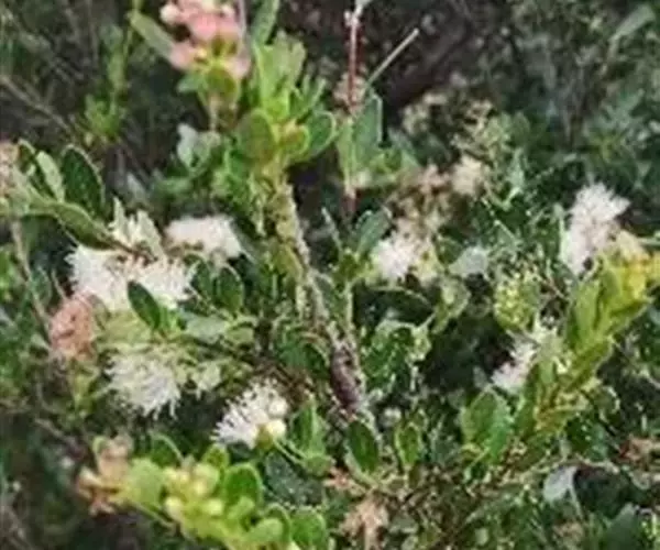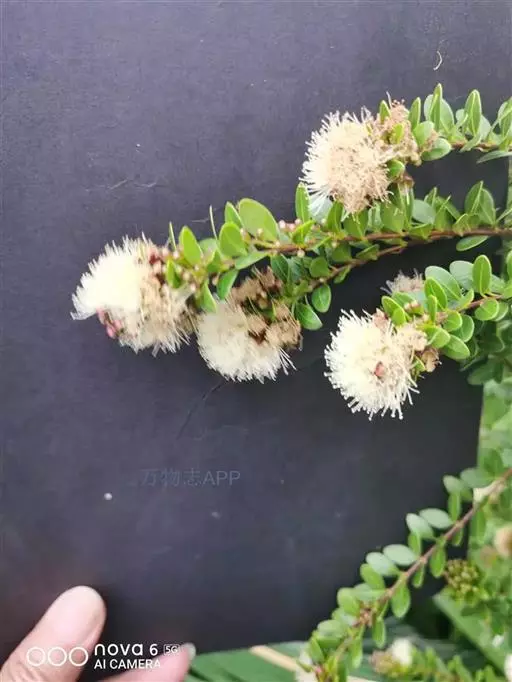 轮叶蒲桃 常绿 灌木,高不及1.5米;嫩枝纤细,有4棱,干后黑褐色。叶片革质,细小,常3叶轮生,狭窄长圆形或狭披针形,长1.5-2厘米,宽5-7毫米,先端钝或略尖,基部楔形,上面干后暗褐色,无光泽,下面稍浅色,多腺点,侧脉密,以50度开角斜行,彼此相隔1-1.5毫米,在下面比上面明显,边脉极接近边缘;叶柄长1-2毫米。