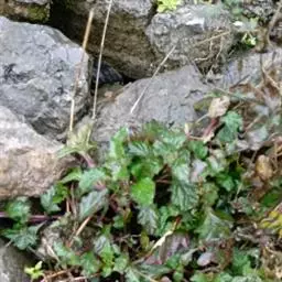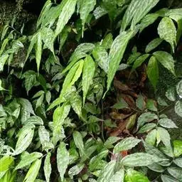 性状鉴别 干品多缠绕扭曲。茎细长,暗紫色,节处可见纤细的不定根或合生的小托叶。叶有两种,一种细小线形,一种较大,湿润展平后呈斜卵形,长2-6cm,宽1-3cm,先端钝圆,基部极不对称,边缘有波状圆锯齿,表面深绿色,可见明显而稠密的线状条纹(钟乳体),尤以边缘处更密集,质脆。气微,味微甘、涩。