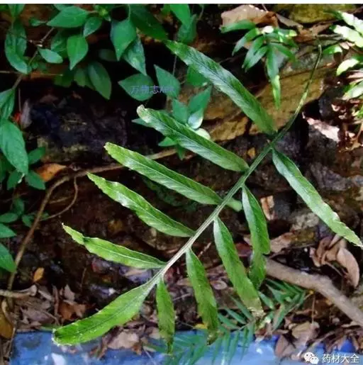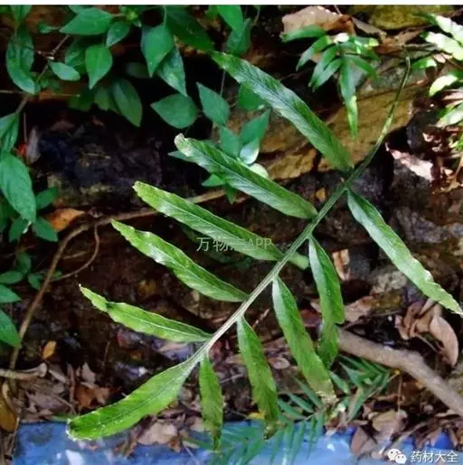 始载于《中国主要植物图说蕨类植物门》。为植物线蕨的全草。用于跌打损伤、热淋、肺痨久嗽。微苦,涩,凉。入肺、肝、膀胱三经。内服:煎汤,6一9克。外用:适量。