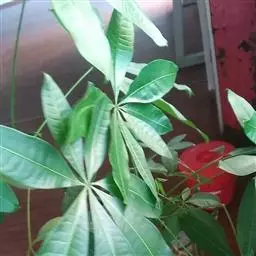 瓜栗 Walp. ),俗称发财树,木棉科小乔木,高4-5米,树冠较松散,幼枝栗褐色,无毛。小叶具…