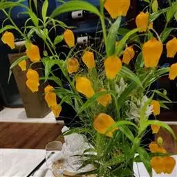 金娃娃萱草:是萱草的人工栽培的园艺品种。地下具根状茎和肉质肥大的纺锤状块根。叶基生,条形,排成两列,…