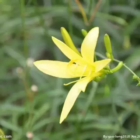 小黄花菜是百合科,萱草属多年生草本植物,根一般较细,绳索状,不膨大。花葶稍短于叶或近等长,花梗很短…