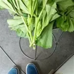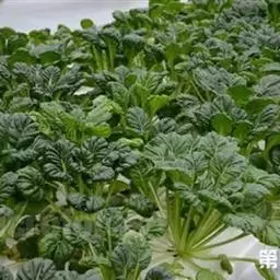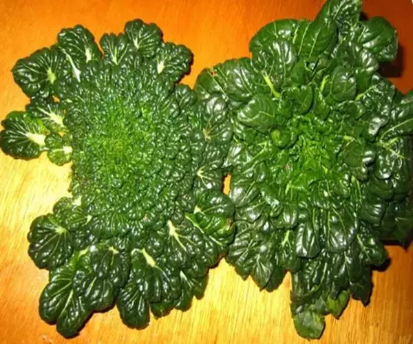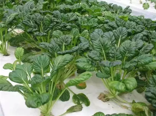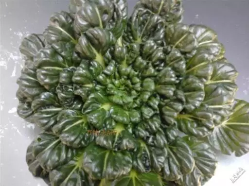 半塌地型植株不完全塌地,代表品种有南京瓢菜,叶片半直立,叶圆形、墨绿色,叶有皱褶,叶脉细稀,叶全缘,叶柄扁平微凹,白色,叶尖外翻,有菊花心之称。
