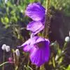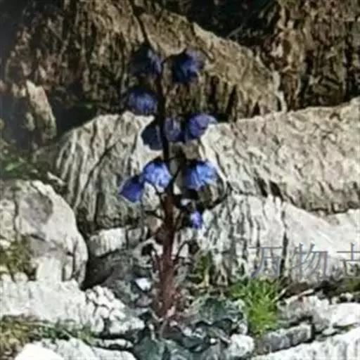 多年生一次结实草本,可高达90cm。茎直立,圆柱状,粗5-10mm;被硬毛叶:全部基生,莲座状;叶柄具狭翅:表面蓝绿色,反面灰绿;正面被基部黑紫色刺毛,中脉在叶背隆起:叶缘波状至浅裂。花:花序总状,有花数十朵;花侧向或稍俯垂,直径44-84cm;花梗07-85cm,被稀疏刺毛;花瓣5-7枚,蓝色至紫色,偶尔浅蓝色或紫红色;花丝与花瓣同色或较之更深,花药灰色或黄灰色;子房卵形,密被刺毛;花柱狭圆柱形,1-3mm;柱头黄色,伸出雄蕊群之外一果实:蒴果,卵形,被直立刺毛,宿存花柱6-7mm,花期6-9月,果期7-10月。