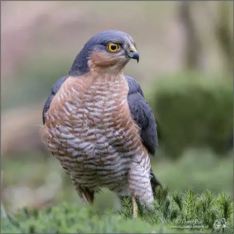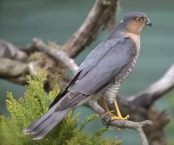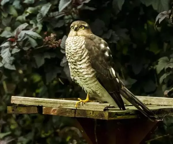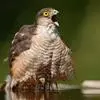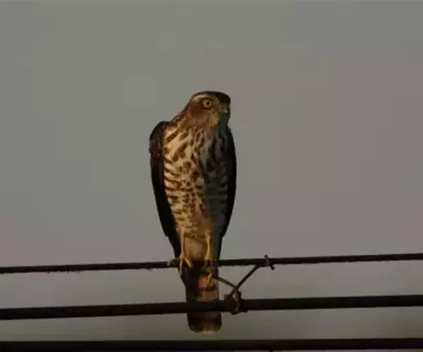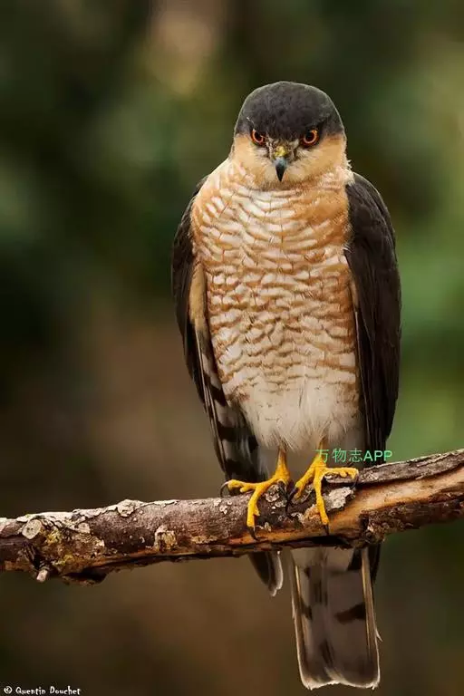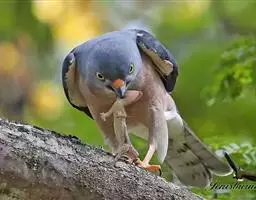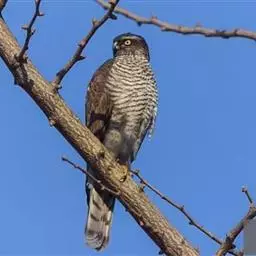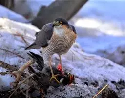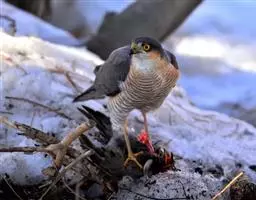 雀鹰(学名:Accipiter nisus)属小型猛禽,体长30-41厘米。雌较雄略大,翅阔而圆,尾较长。雄鸟上体暗灰色,雌鸟灰褐色,头后杂有少许白色。下体白色或淡灰白色,雄鸟具细密的红褐色横斑,雌鸟具褐色横斑。尾具4-5道黑褐色横斑,飞翔时翼后缘略为突出,翼下飞羽具数道黑褐色横带,通常快速鼓动两翅飞一阵后接着又滑翔一会。栖息于针叶林、混交林、阔叶林等山地森林和林缘地带。日出性。常单独生活。或飞翔于空中,或栖于树上和电柱上。以雀形目小鸟、昆虫和鼠类为食,也捕食鸽形目鸟类和榛鸡等小的鸡形目鸟类,有时亦捕食野兔、蛇、昆虫幼虫。分布于欧亚大陆,往南到非洲西北部,往东到伊朗、印度和中国及日本。越冬在地中海、阿拉伯、印度、缅甸、泰国及东南亚国家。