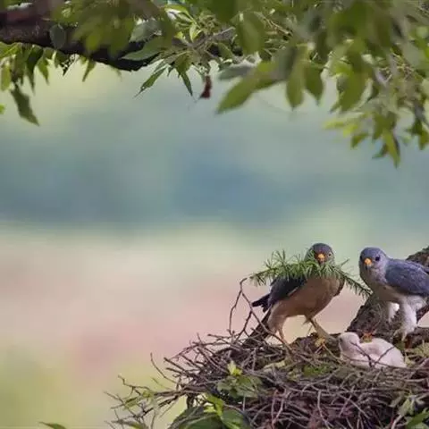 繁殖期5-7月。营巢于森林中的树上,距地高4-14米。巢通常放在靠近树干的枝叉上。常在中等大小的椴树、红松树或落叶松等阔叶或针叶树上营巢,有时也利用其他鸟巢经补充和修理而成。巢区和巢均较固定,常多年利用。巢呈碟形,主要由枯树枝构成,内垫有云杉小枝和械树、卫茅等新鲜树叶。每窝产卵通常3-4枚,偶尔有多至5枚和6枚甚至7枚和少至2枚的,通常间隔1天产1枚卵。卵呈椭圆形或近圆形,鸭蛋清色、光滑无斑,大小为29.8×38.6毫米,重17-18克。雌鸟孵卵,雄鸟偶尔亦参与孵卵活动,孵化期32-35天。雏鸟晚成性,经过24-30天的巢期生活,雏鸟即具飞翔能力和离巢。