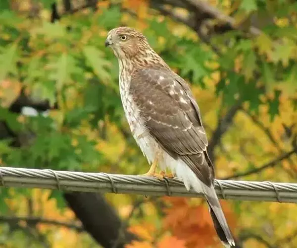幼鸟头顶至后颈栗褐色,枕和后颈羽基灰白色,背至尾上覆羽暗褐色,各羽均具赤褐色羽缘,翅和尾似雌鸟。喉黄白色,具黑褐色羽干纹,胸具斑点状纵纹,胸以下具黄褐色或褐色横斑。其余似成鸟。