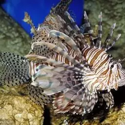 斑鳍蓑鲉是鲉科,蓑鲉属硬骨鱼。体长25-40厘米,体表黄色,布有红色至棕色条纹。背部有毒棘,胸鳍羽…