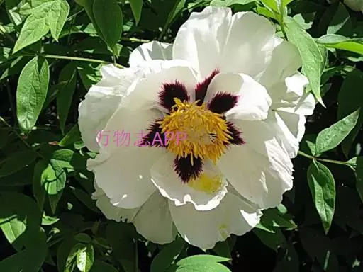 紫斑牡丹(学名:Paeonia suffruticosa Andr. var.papaveracea (Andr.) Kerner)是毛莨科芍药属植物,落叶灌木,茎高达2米,分枝短而粗。叶为二至三回羽状复叶,小叶不分裂。花单生枝顶,直径10-17厘米;花梗长4-6厘米;花瓣内面基部具深紫色斑块,倒卵形,顶端呈不规则的波状;花盘革质,杯状,紫红色,顶端有数个锐齿或裂片,完全包住心皮,在心皮成熟时开裂。瞢荚果长圆形,密生黄褐色硬毛。