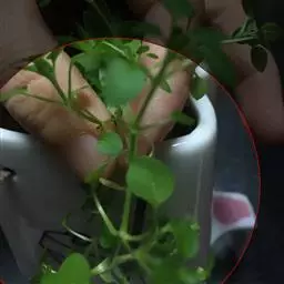原料:1.主料:繁缕250克,黄豆150克。2.调料:精盐、葱花。