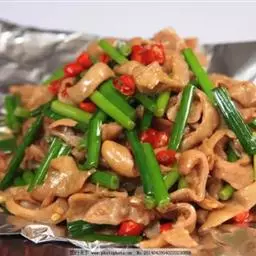 5.炒锅留底油,放回旺火上,下红糟、姜片煸炒一下,加点清水,再放下豆腐皮片,加入白酱油、白糖、味精,翻炒几下即成。