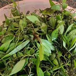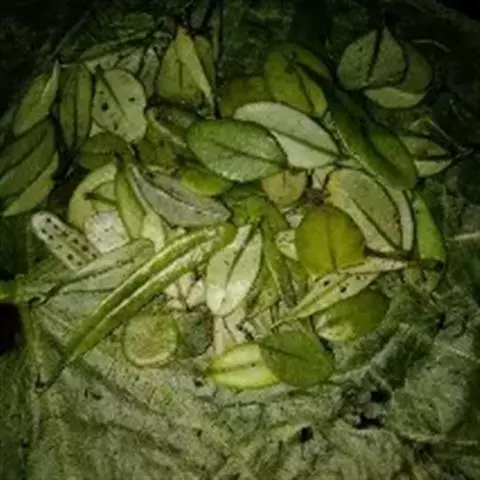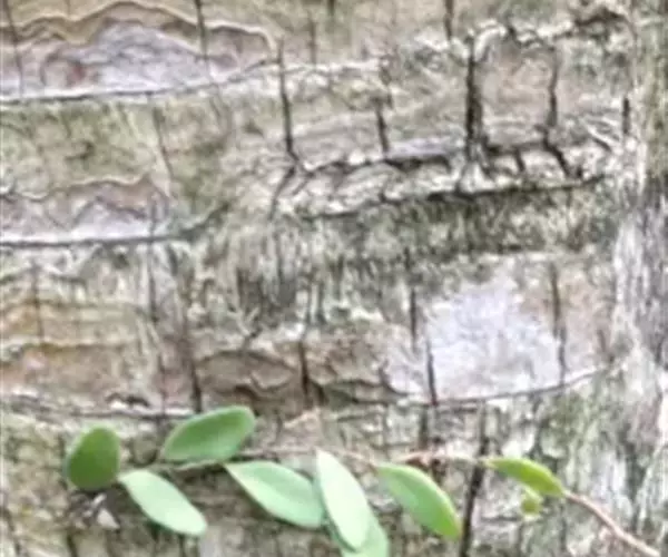 叶表面观:下表皮细胞垂周壁波状弯曲,平周壁具角质纹理,气孔不定式或不等式,副卫细胞4-6个。上表皮细胞垂周壁稍波状弯曲,平周壁具角质纹理,气孔极少。非腺毛单细胞,少数有2细胞,长66-206μm,常弯曲,外壁有疣状突起,顶端常具有一凸头。叶肉薄壁细胞中含草酸钙簇晶,直径20-33μm。