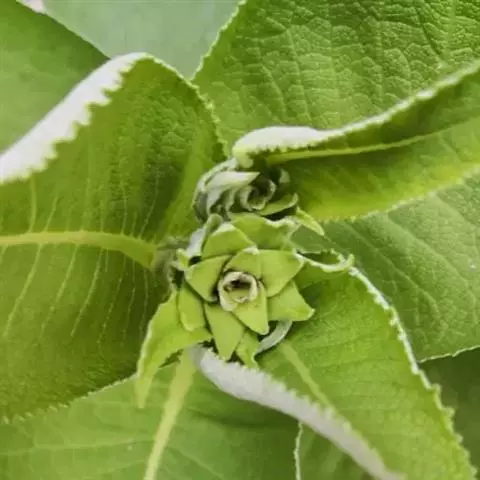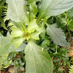 叶长圆状披针形至披针形,长6-10厘米,宽1.5-2.5厘米;下部叶较小,在花期枯萎,中部以上叶无柄,基部稍狭并扩大成圆耳形,抱茎,边缘有小尖头状疏锯齿,顶端渐尖,下面有黄色腺点,脉上有短柔毛,上面无毛;中脉和7-8对侧脉在下面稍高起,网脉明显。