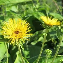 为菊科植物湖北旋覆花的干燥头状花序。生长于林下和山坡草地。分布于湖北、四川等省。与上种相似,叶矩圆状披针形至披针形,顶端渐尖,基部稍狭并扩大成圆耳形,抱茎。性状:与水朝阳花形态相近似。不同点为冠毛约与花冠管部等长,有5个或稍多的微糙毛 。