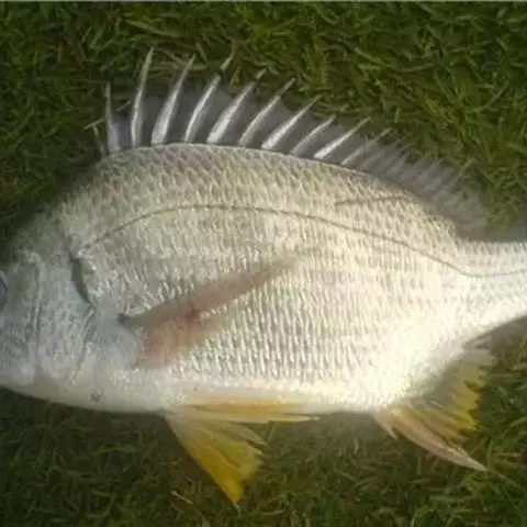 黑鲷是鲈形目鲷科棘鲷属的一种硬骨鱼,俗称海鲋、青鳞加吉、青郎、乌颊、牛屎鱲、乌翅、黑加吉、黑立、海鲫和铜盆鱼等。体呈长椭圆形,侧扁,头中大,吻钝尖。口小,上、下颌等长;体被中等大的弱栉鳞,体侧通常有5~7条黑色条纹。背鳍棘坚硬,臀鳍第二鳍棘尤甚;体背部为灰黑色,侧线起点处有黑斑点,体侧常有数条不明显的暗褐色横带,腹部银白。黑鲷分布于中国、日本和韩国等地的沿岸、港湾及河口,属内湾性鱼类,在中国,以黄海、渤海数量较多。黑鲷为浅海、底层鱼类,喜栖于沙、泥底或多岩礁的清水中,为广温、广盐性鱼类,对于环境适应能力较强。黑鲷为杂食性鱼类,在自然海区,以软体动物的蛤类、小鱼虾类为主食,有时也吃海藻,人工养殖可采用低值鱼虾贝类或配合饵料投喂。黑鲷具有很强的繁殖力,雌雄同体,雄性先熟,怀卵量达200万~300万粒以上。黑鲷是名贵海产鱼之一,全体药食兼用。具有健脾利水、补气活血的功效;用于脾虚水肿、小儿脾胃不