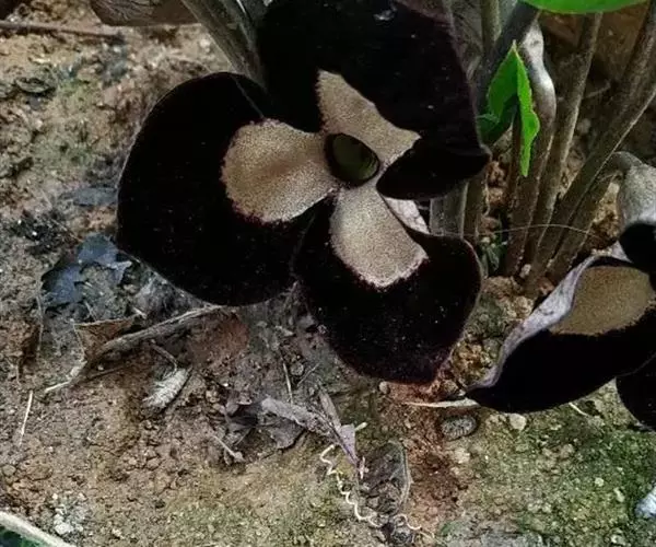 多年生草本;根状茎直立或横走,直径2-3毫米,节间长1-2厘米,有多条须根。叶通常2枚,叶片心形或卵状心形,长4-11厘米,宽4.5-13.5厘米,先端渐尖或急尖,基部深心形,两侧裂片长1.5-4厘米,宽2-5.5厘米,顶端圆形,叶面疏生短毛,脉上较密,叶背仅脉上被毛;叶柄长8-18厘米,光滑无毛;芽苞叶肾圆形,长与宽各约13毫米,边缘疏被柔毛。花紫黑色;花梗长2-4厘米;花被管钟状,直径1-1.5厘米,内壁有疏离纵行脊皱;花被裂片三角状卵形,长约7毫米,宽约10毫米,直立或近平展;雄蕊着生子房中部,花丝与花药近等长或稍长,药隔突出,短锥形;子房半下位或几近上位,球状,花柱6,较短,顶端2裂,柱头侧生。果近球状,直径约1.5厘米,棕黄色。花期4-5月。