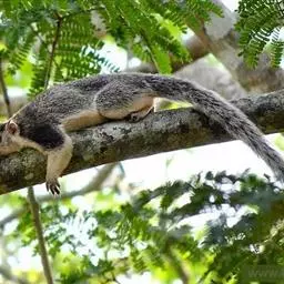 林睡鼠(Dryomys nitedula),体重20-40g,外型像松鼠,尾部被毛蓬松,尾侧毛较长,而且向尾的两侧生长。体长80-130mm,尾部长度60-113mm,与体长接近。体背和头顶的毛色从黄褐到赤褐色,以至暗褐。腹部毛色乳黄,体侧与腹部之间界线明显,头部两侧从耳的基部,经眼到鼻各有一条黑色毛斑。