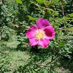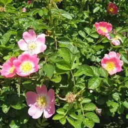 刺蔷薇(学名:Rosa acicularis Lindl.):灌木,高1-3米;小枝圆柱形,稍微弯曲,红褐色或紫褐色,无毛,有细直皮刺。小叶片宽椭圆形或长圆形。花单生或2-3朵集生,苞片卵形至卵状披针形,先端渐尖或尾尖,边缘有腺齿或缺刻,花梗无毛,密被腺毛;萼筒长椭圆形,光滑无毛或有腺毛;萼片披针形,花瓣粉红色,芳香,倒卵形,先端微凹,基部宽楔形;花柱果梨形、长椭圆形或倒卵球形,红色,有光泽。花期6-7月,果期7-9月。
