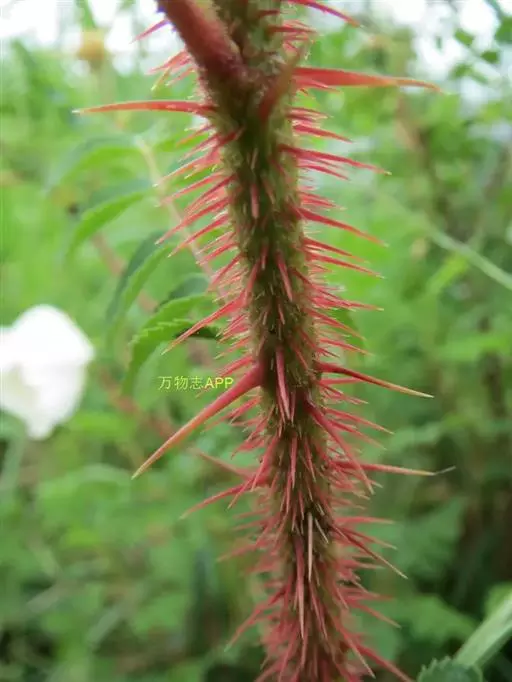 刺蔷薇:灌木,高1-3米;小枝圆柱形,稍微弯曲,红褐色或紫褐色,无毛,有细直皮刺。小叶片宽椭圆形或…