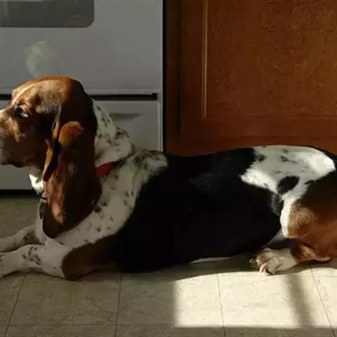 (2)、发情期母犬表情兴奋。随着发情期的持续,母犬的兴奋增强,表情比平时恍惚不安,吠声粗大,双目发亮。发情炽期,母犬坐卧不安,食欲锐减,拴养的母犬不断对空发出求偶吠,养犬者这时如果用手按压母犬的腰部或抚摸犬尾时,母犬站立不动,或把犬尾偏向一侧,犬的阴唇不断抽动,并且阴门频频开启和闭合,这时如用性成熟的公犬试情时,发情的母犬后肢叉开,出现主动接受交配状。养犬者在犬的发情期,一定要密切观察发情母犬的上述变化和表情,一定要记住母犬发情开始(母犬阴道流血第一天)的日子,以便推算出该母犬最佳的交配日:只有在最佳交配日配种,才能提高母犬的受胎率和产仔数。
