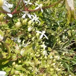 圆锥状聚伞花序腋生或顶生,多花,长而疏展;花直径2.5-4厘米;萼片4,开展,白色或略带水红色,披针形或倒披针形,长1.2-2厘米,外面近无毛,边缘密生短绒毛,内面有较密短柔毛;雄蕊无毛,花药椭圆形或长椭圆形,长1-2毫米,花丝干时明显皱缩,比花药长3-5倍。瘦果镰刀状狭卵形,有柔毛,长4-6毫米。花期12月至第二年1月,果期2月。