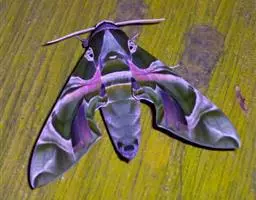 夹竹桃天蛾是鳞翅目天蛾科昆虫。又称夹竹桃白腰天蛾、巴纹天蛾。成虫呈青黑色,四翅正反面都以橄榄色为主调,…