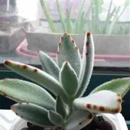 褐斑伽蓝是景天科、伽蓝菜属多年生肉质草本植物或小灌木。全株灰白色,密布白色茸毛。叶片长卵形,…
