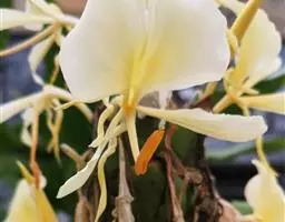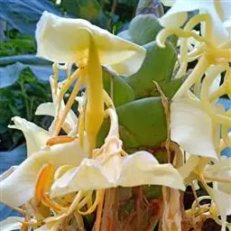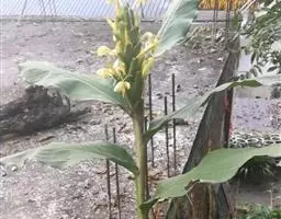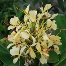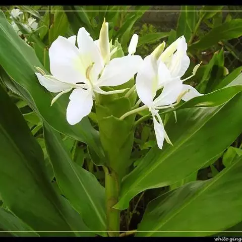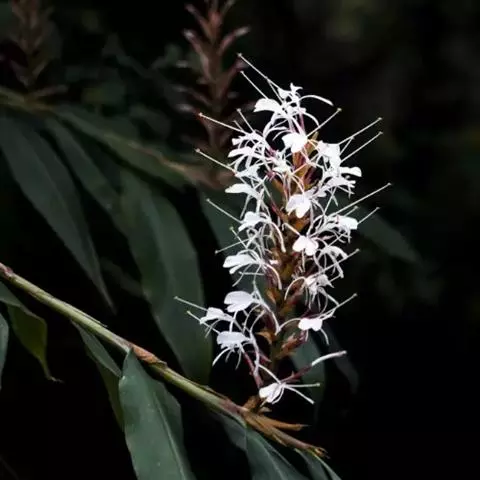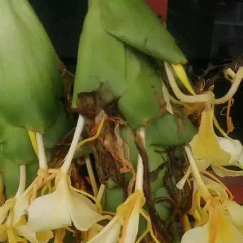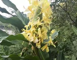 滇姜花(学名:Hedychium yunnanense Gagnep.)是姜科、姜花属陆生或附生草本植物,茎粗壮。叶片卵状长圆形至长圆形,两面均无毛,顶端具尾状尖头,基部渐狭成槽状的短柄;叶舌长圆形,穗状花序,苞片披针形,花萼管状,顶端不明显的齿,有缘毛;花冠管纤细,裂片线形,侧生退化雄蕊长圆状线形,基部收窄,较花冠裂片稍短,唇瓣倒卵形,柱头具缘毛;子房被疏柔毛。蒴果具钝三棱,种子多数,红色、9月开花。