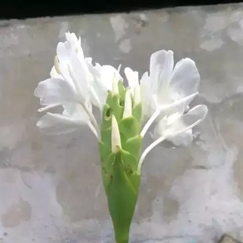 穗状花序长达20厘米;苞片披针形,长1.5-2.5厘米,内卷,无毛,内生一花;花萼管状,长1.7-2.8厘米,顶端具不明显的钝三齿,有缘毛;花冠管纤细,长3.5-5厘米,裂片线形,长2.5-3厘米;侧生退化雄蕊长圆状线形,基部收窄,较花冠裂片稍短,但较阔;唇瓣倒卵形,长约2厘米,2裂至中部,基部具瓣柄;花丝长3.5-4厘米,花药长1-1.2厘米;柱头具缘毛;子房被疏柔毛。