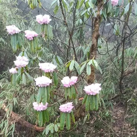 露珠杜鹃:灌木,小乔木,高约2-9米;小枝粗壮,直径约4-5毫米;幼枝有薄层绒毛和腺体,…