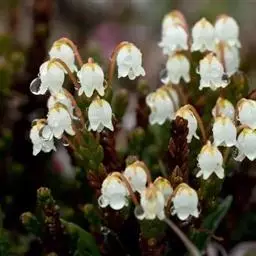 它是一种不怕冷的寒带小灌木,杜鹃花科。为了适应环境,它的叶子都演变得又细又小,花朵也是出奇的袖珍,每一朵花都是铃形,直径还不到半公分,玲珑无比。 冰天雪地的北欧,叶落花残,小小的欧石楠,挺着娇小身躯,在冰封的荒原倔强地生长,漫山遍野,从不凋萎,在万物枯槁的极地冰原,为驯鹿们带来冽冽严冬里温馨的食粮。勇敢,无私,白色、桃色、紫色的小花盛放在雪地里,为皑皑冰原装点春色。
