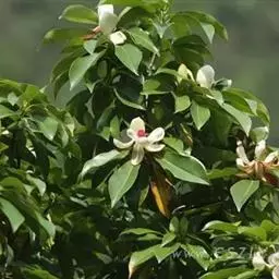 四川木莲,木莲属常绿乔木。树姿雄伟,枝繁叶茂,花大而美丽,有芳香。花期4-5月,果期8-9月。产于…