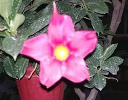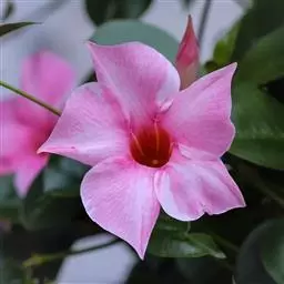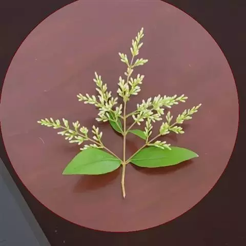 聚伞花序圆锥状,宽松展开,多歧,顶生,着花多朵;总花梗略具白粉和被短柔毛;花小,粉红色;花萼5深裂,外面被短柔毛,内面具有5枚小腺体,花萼裂片卵圆形,顶端钝;花冠近坛状,花冠筒喉部无副花冠,裂片卵圆形,向右覆盖;雄蕊5枚,着生于花冠筒基部,花丝短,花药披针状箭头形,基部具耳,顶端到达花冠筒喉部,腹面贴生于柱头上;花盘环状,全缘,围绕子房周围,比子房短;子房由2枚离生心皮所组成,被短柔毛,花柱丝状,柱头顶端2裂。