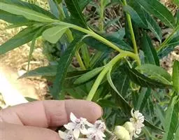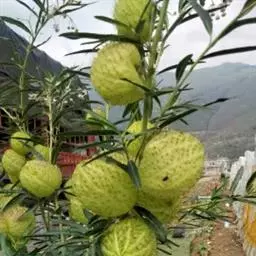 蓇葖2枚,叉开成近一直线,圆筒状披针形,长达15厘米,外果皮有明显斑点;种子长圆形,顶端具白色绢质种毛。花期4-12月,果期7月-翌年1月。