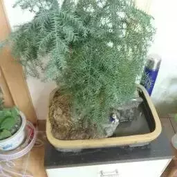 澳洲杉,常绿乔木,一般盆栽为幼树,高在2米以下。喜温暖、潮湿的环境,树冠尖塔形,深绿色。茎干直立,…