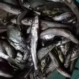 ② 帆鳍鳖鱼:体长 30 厘米,体银灰,尾叉形,侧有 8 条纵斑点条纹,背鳍宽大如帆。