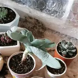 叶插:神刀还可以用叶插繁殖。选择挺拔充实的叶片,采下后置凉处阴干伤口,然后将叶平展于基质上,保持插壤湿润,可在叶基部荫出小株。或将叶片切成5-6厘米长的叶段,待伤口干燥后,平放在湿润的基质上,约20-30天可从愈合处生根,并长出小株。