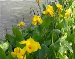 黄花美人蕉:多年生草本植物,高可达1.5米,全株绿色无毛,被蜡质白粉。具块状根茎。地上枝丛生。…