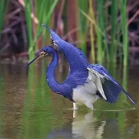 大蓝鹭是鹳形目鹭科的鸟类。共有5个亚种,体长137厘米。全身大部分羽毛呈灰蓝色羽毛,…