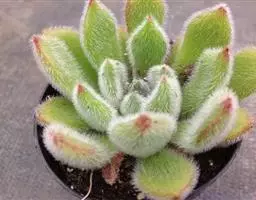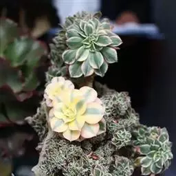 戴冠曲 景天科莲花掌属多肉植物,为亚灌木分枝多,叶片生长在茎端和分枝顶端集和成莲座叶盘,叶片倒卵形,植株容易群生。