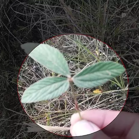 直立或披散亚灌木。幼枝三棱柱状,密被灰褐色短柔毛。叶具指状3小叶;托叶线状披针形,长约0.6-1厘米,有纵纹,被毛,先端细尖,宿存;叶柄长2-2.5厘米;小叶厚纸质,长椭圆形或卵状披针形,偏斜长4-7(-9)厘米,宽1.7-3厘米,先端钝,有时有小凸尖,基部圆形,上面被疏短柔毛,背面密被灰褐色柔毛;基出脉3,侧脉及网脉在上面多少凹陷,下面凸起,侧生小叶略小;小叶柄极短,密被短柔毛。