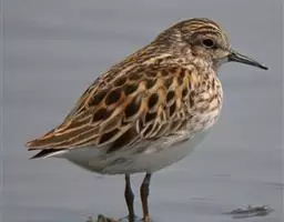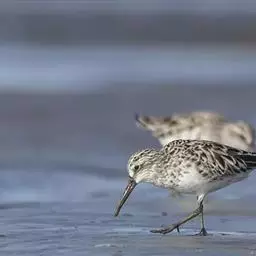 阔嘴鹬是涉禽,体长17厘米。特征为翼角常具明显的黑色块斑并具双眉纹。与黑腹滨鹬平滑下弯的嘴相比,…