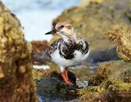 白腹海鹦,前趾间有蹼膜,后趾缺如。翅窄而短小,尾短。体羽黑白二色,雌雄羽色相似