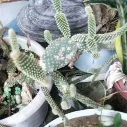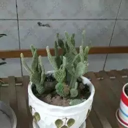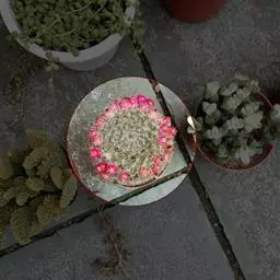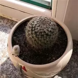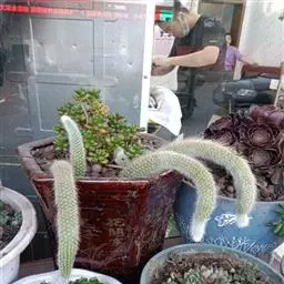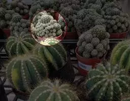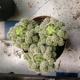 子孙球最宜盆栽。要经常转动花盆,调节其长势。子孙球盆栽,宜在4月中下旬进行。栽培前,要选大小适宜的土陶花盆。基质可用粗河砂3份、砂质园田土2份、森林腐叶土2份、堆积的腐殖土5份、老墙石灰土1.5份配制,配合时再加少量的过磷酸钙、骨粉、蛋壳粉,充分混合,曝晒数日,进行高温和紫外线消毒,便可上盆使用。操作时,盆底要用碎盆片覆盖,木炭块作排水层,上面再填培养土。栽培时,挑选生长健壮的种球,带土团撬起。基质要刮平落实,用竹筷打孔,将种球端正地栽培在花盆中央,周围壅土扎紧,使之不偏不歪,稳定在盆土表面,浇一次定根水。同时,浇水后还要检査,种球是否偏离,如出现歪倒,还要扶正加土紧扎,使之稳固。最后把花盆置于半荫蔽处,缓苗5-7天,待其恢复生机后,便可进行正常管理。