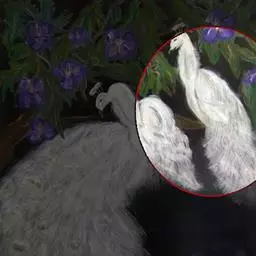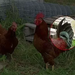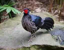 此外,在它的项下还生有一块图案奇特的肉裙,色彩绚丽而富于变幻,两边分别有八个镶着白边的鲜红色斑块,中间在黑色的衬底上散布着许多天蓝色的斑点,有人说这些斑点很象草书的“寿”字,所以又称它为“寿鸡”,视为长寿和好运的象征。