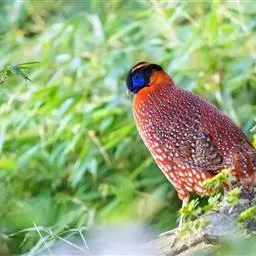 红腹角雉喜欢居住在有长流水的沟谷、山涧及较潮湿的悬崖下的原始森林中,在海拔1000—3500米之间均有分布。 主要以乔木、灌木、竹以及草本植物和蕨类植物的嫩叶、幼芽、嫩枝、种子为食。主要分布于东南亚地区,包括中国南部及印度等地。该物种属于国家二级保护动物,并被列入世界濒危鸟类名录N级。