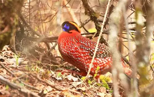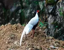 红腹角雉栖息于海拔1000-3500m的山地森林、灌丛、竹林等不同植被类型中,其中尤以1500-2500m的常绿 红腹角雉 阔叶林和针阔叶混交林最为喜欢,有时也上到海拔3500m左右的高山灌丛,甚至裸岩地带活动。