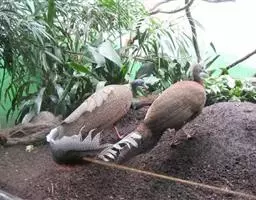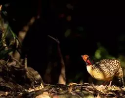 它的胆子很小,走过林间小路时,常常先从灌丛边伸头张望,确认没有危险时才迅速通过。每当夜幕降临时,它们就悄悄地飞到树上过夜,雄鸟和雌鸟在相距不远的树上分别栖息。