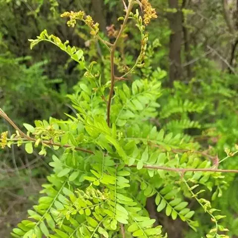 落叶乔木或小乔木,高达25米;小枝紫褐色或脱皮后呈灰绿色,微有棱,具分散的白色皮孔,光滑无毛;刺略扁,粗壮,紫褐色至棕黑色,常分枝,长2-15.5厘米。